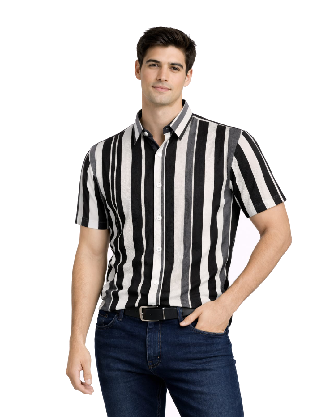 Classic black and white striped shirt for a timeless and clean look. Ideal for everyday wear and smart casual outfits.