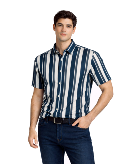 White & Ocean Blue Stripe Shirt